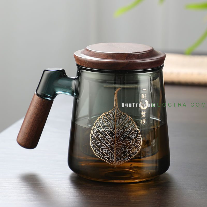 Một chiếc cốc pha trà, trà hoa hoàn hảo cho dân văn phòng, người bán hàng, thiền nhân, cho các phật tử ưa thích họa tiết lá bồ đề.